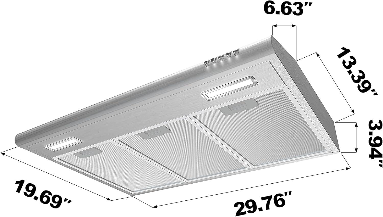 30 inch Under Cabinet Range Hood with Push Button Control Stainless Steel Slim Vent Hood with 3 Speed Exhaust Fan Ducted and Ductless Convertible CIARRA CAS75918B