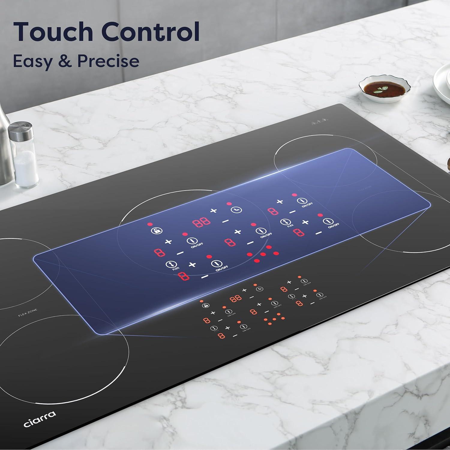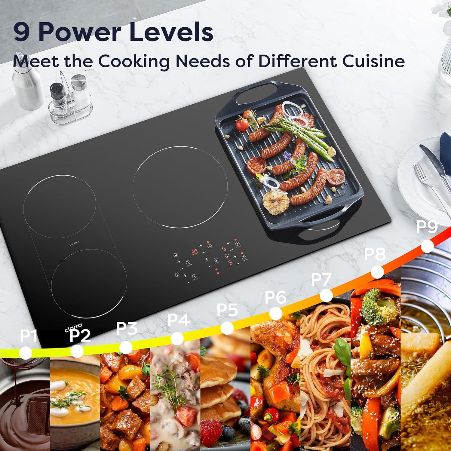 Powerful Cooktop: CIARRA induction cooktop offers 4 burners with 9 power levels, controlled by sliding touch sensors. It provides precise heating for all your cooking needs, from simmering to rapid boiling, perfect for daily meals and family feasts.