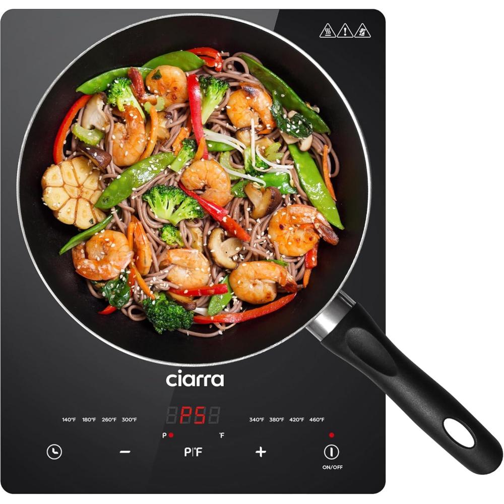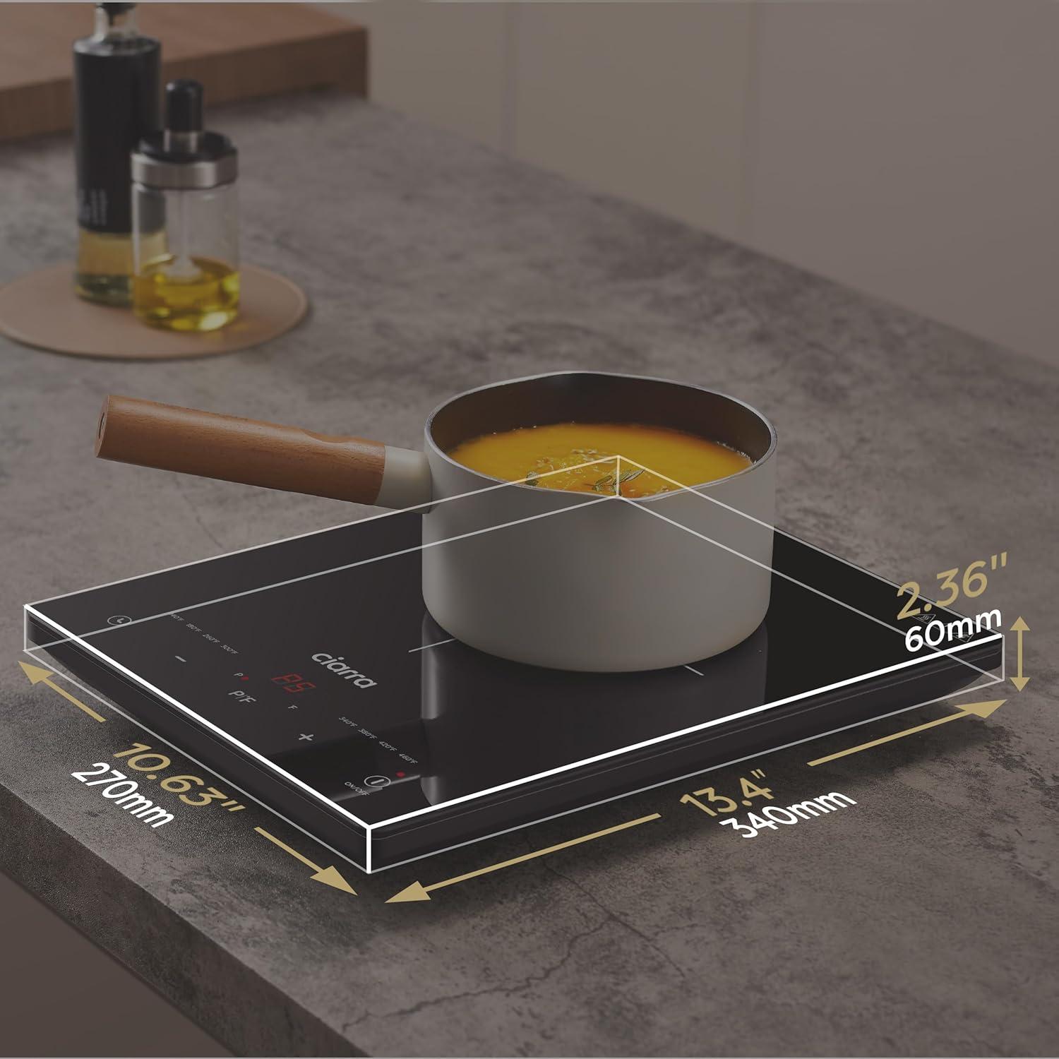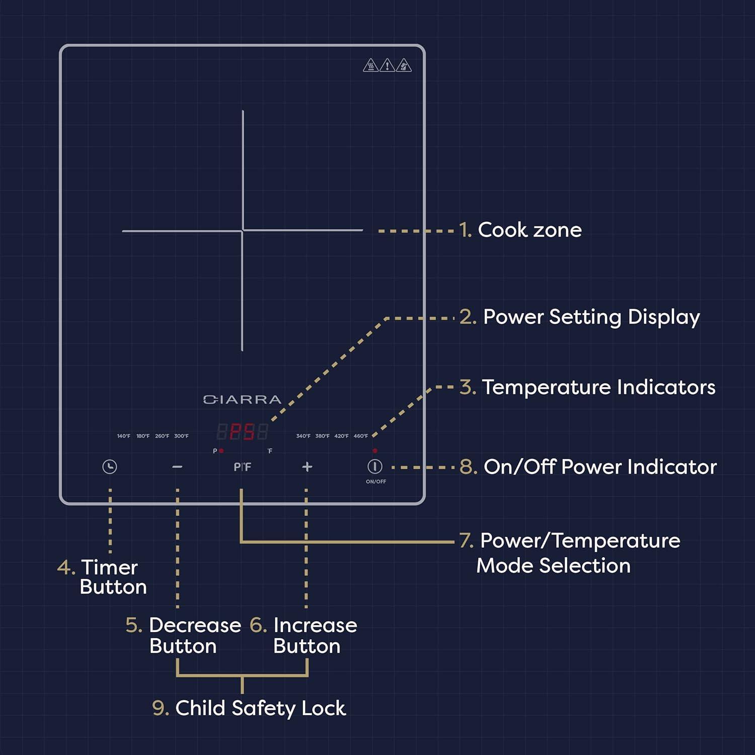 9 POWER LEVELS: The induction cooktop can be set 9 power levels from 100W to 1800W to meet your various cooking needs; simmer, deep fry, boil, sear, steam and grill with ease.
