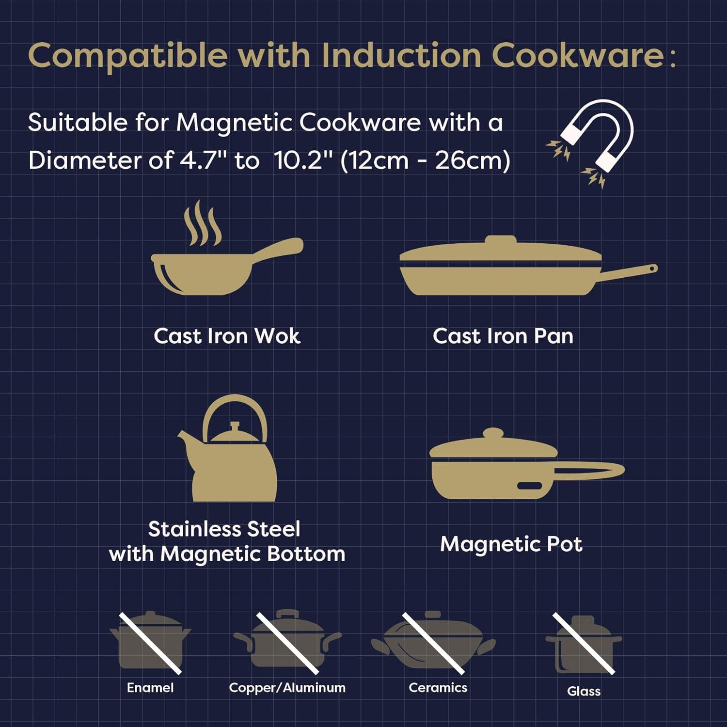 COMPATIBLE COOKWARE: The induction cooktop suitable for magnetic induction cookware (4.7 inch to 11 inch in diameter).