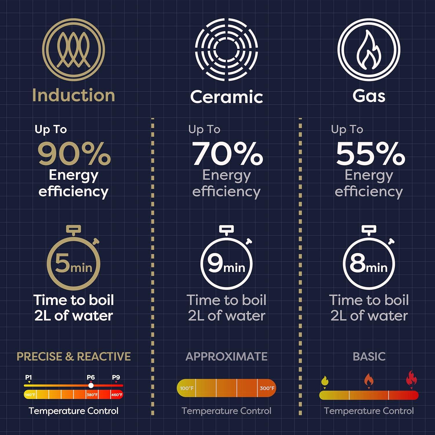 ENERGY EFFICIENCY: Cooking your food 50% faster than conventional gas or electric cooktops. Burner heats only within the diameter of the pan, so no energy is being wasted.