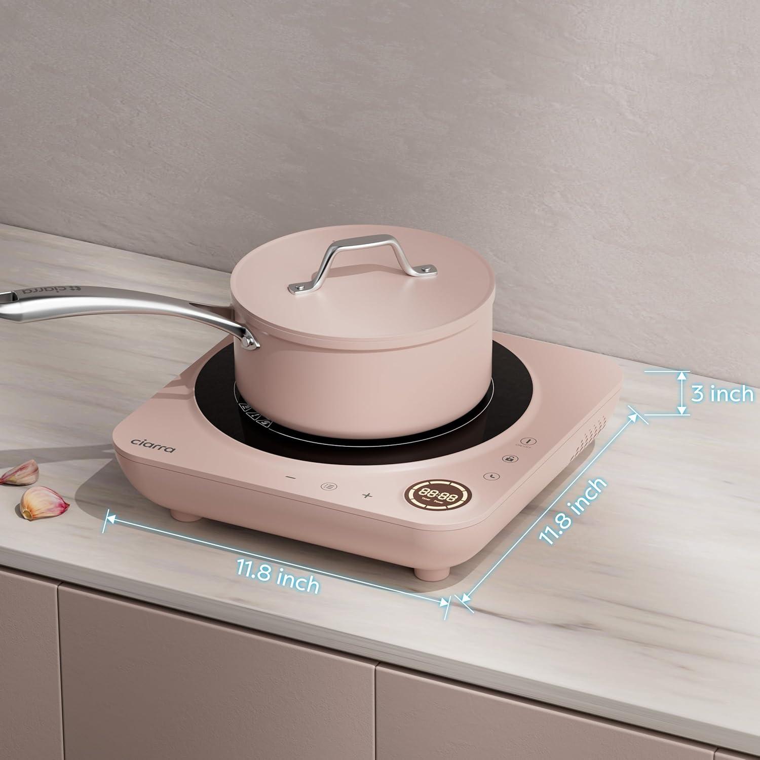 imageCIARRA CATIH1AP Portable Induction Cooktop Slim Single Electric Countertop Burner with Sensor Touch and Digital time PinkPink