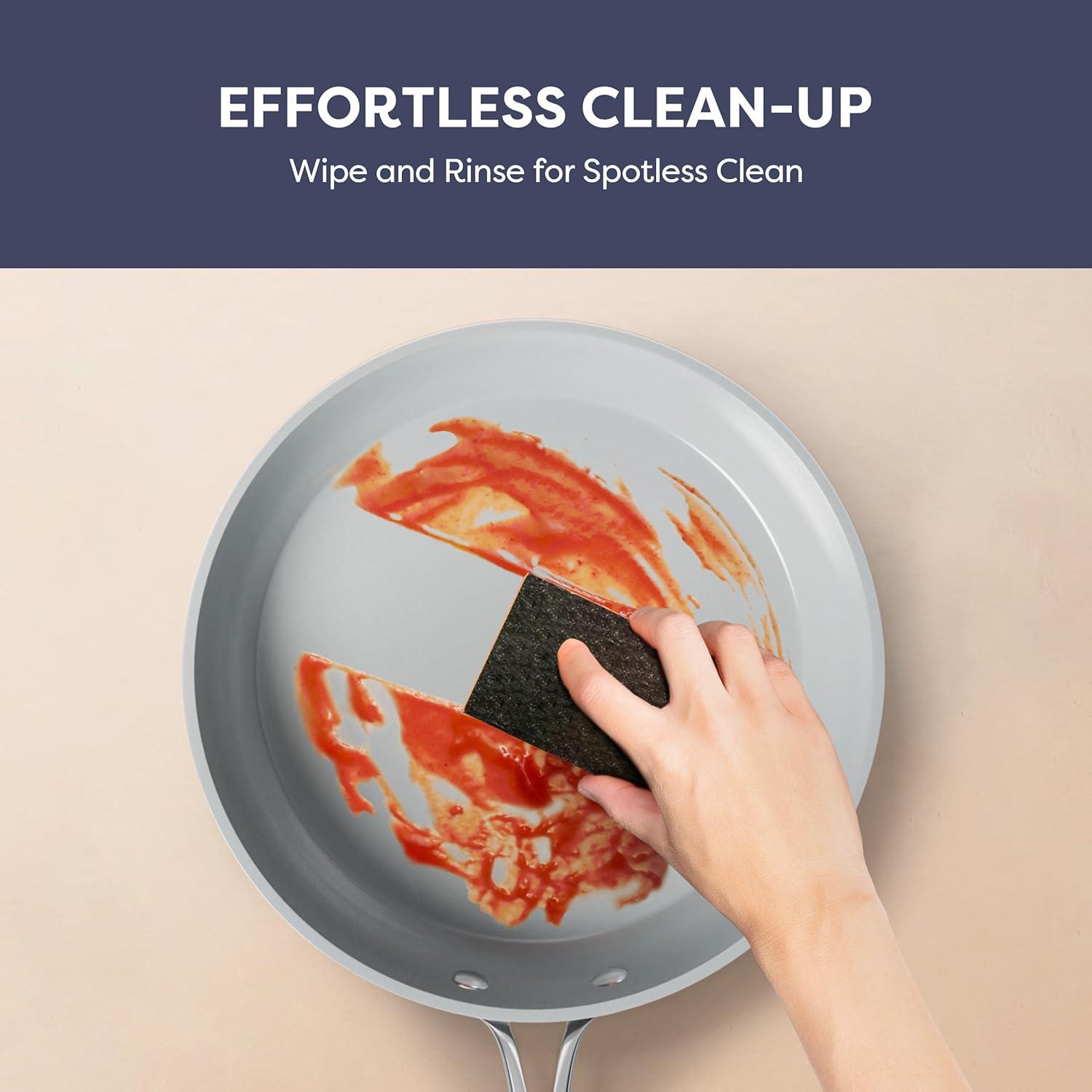 TOXIC-FREE HEALTH-MINDED COOKING: The nonstick cookware set with ceramic coating, free of PTFE, PFOA and other toxic materials. It is safe for you, your family and the environment, leading you a healthy lifestyle.