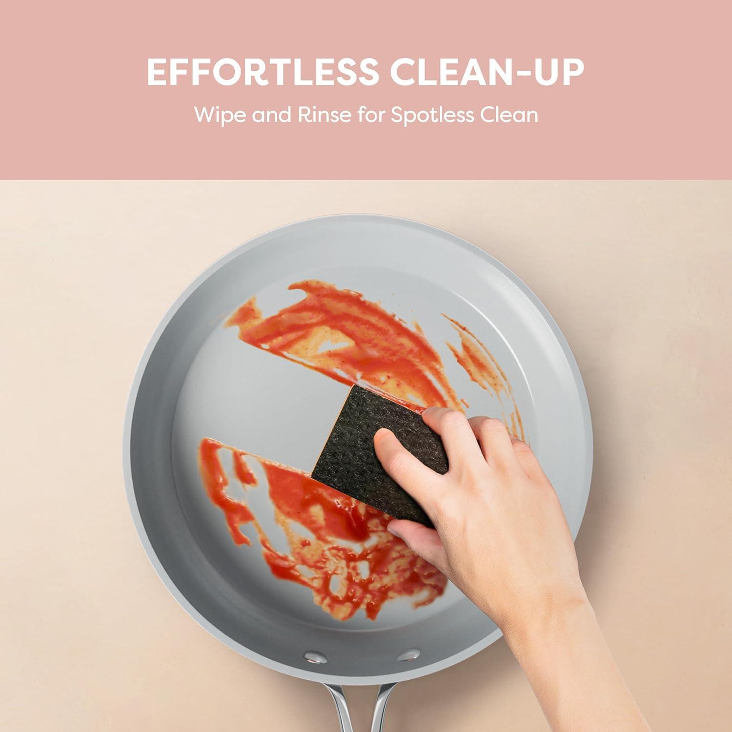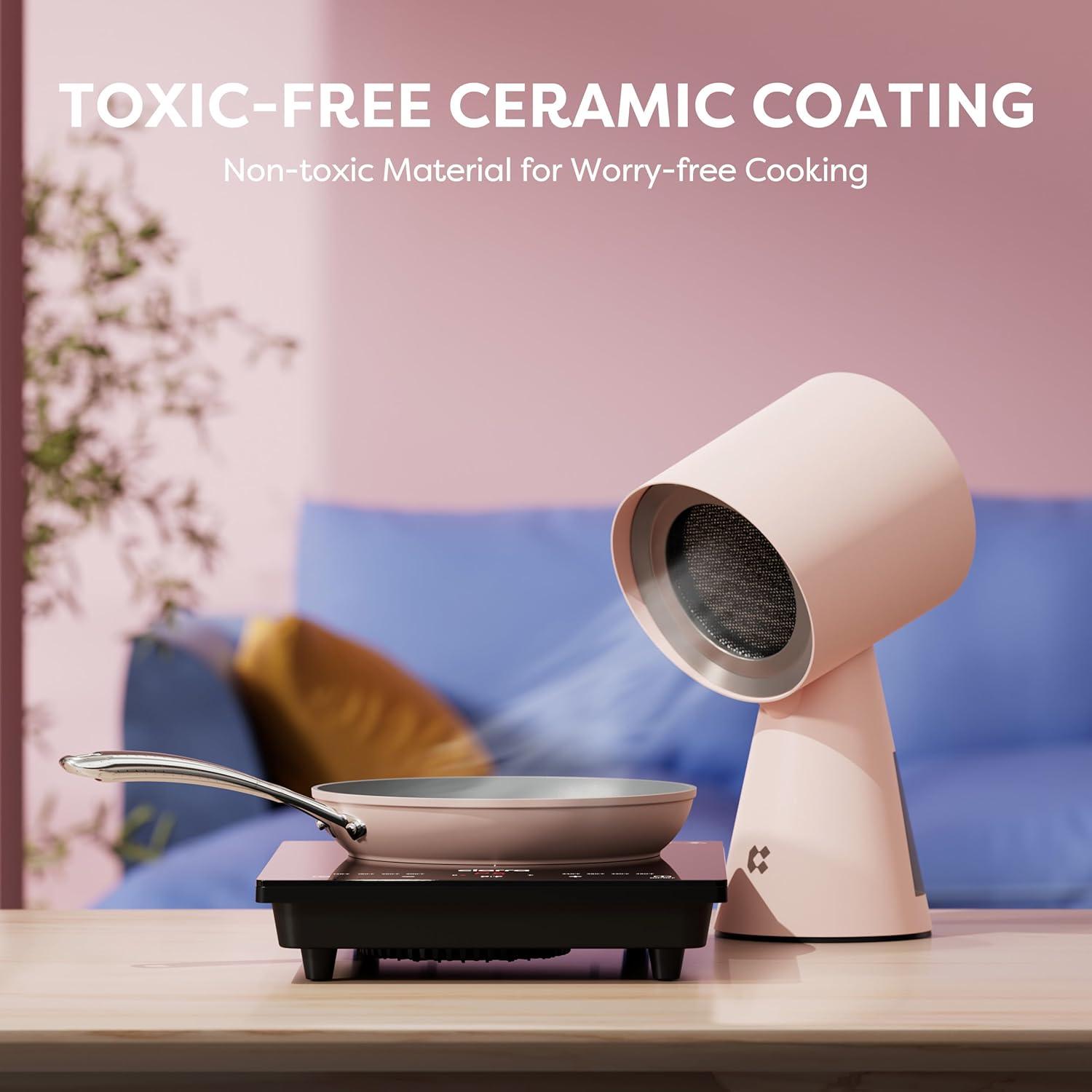 TOXIC-FREE HEALTH-MINDED COOKING: The nonstick cookware set with ceramic coating, free of PTFE, PFOA and other toxic materials. It is safe for you, your family and the environment, leading you a healthy lifestyle.
