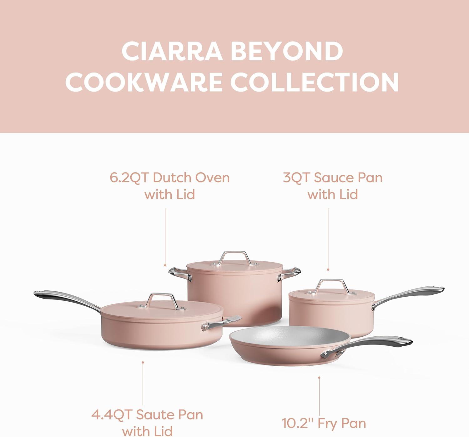 imageCIARRA Non Stick Cookware Set Ceramic Pots and Pans Set with Lid Non Toxic Cooking Set PTFE ampamp PFOA Free Oven Safe ampamp Compatible with All Stovetops OrangeCBCWSM7