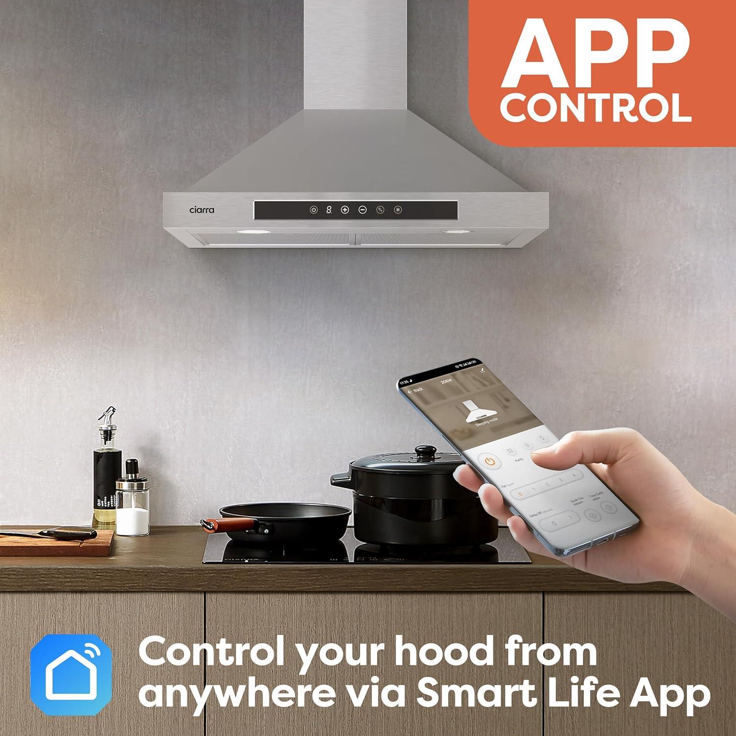 VOICE ACTIVATED & APP CONTROL: Smart range hood connects with Alexa Devices, Google Assistant and Smart Life APP. Control your kitchen hood from anywhere & anytime with simple commands. (2.4GHz Wi-Fi Enabled, remember to use the same network for the first connection)
