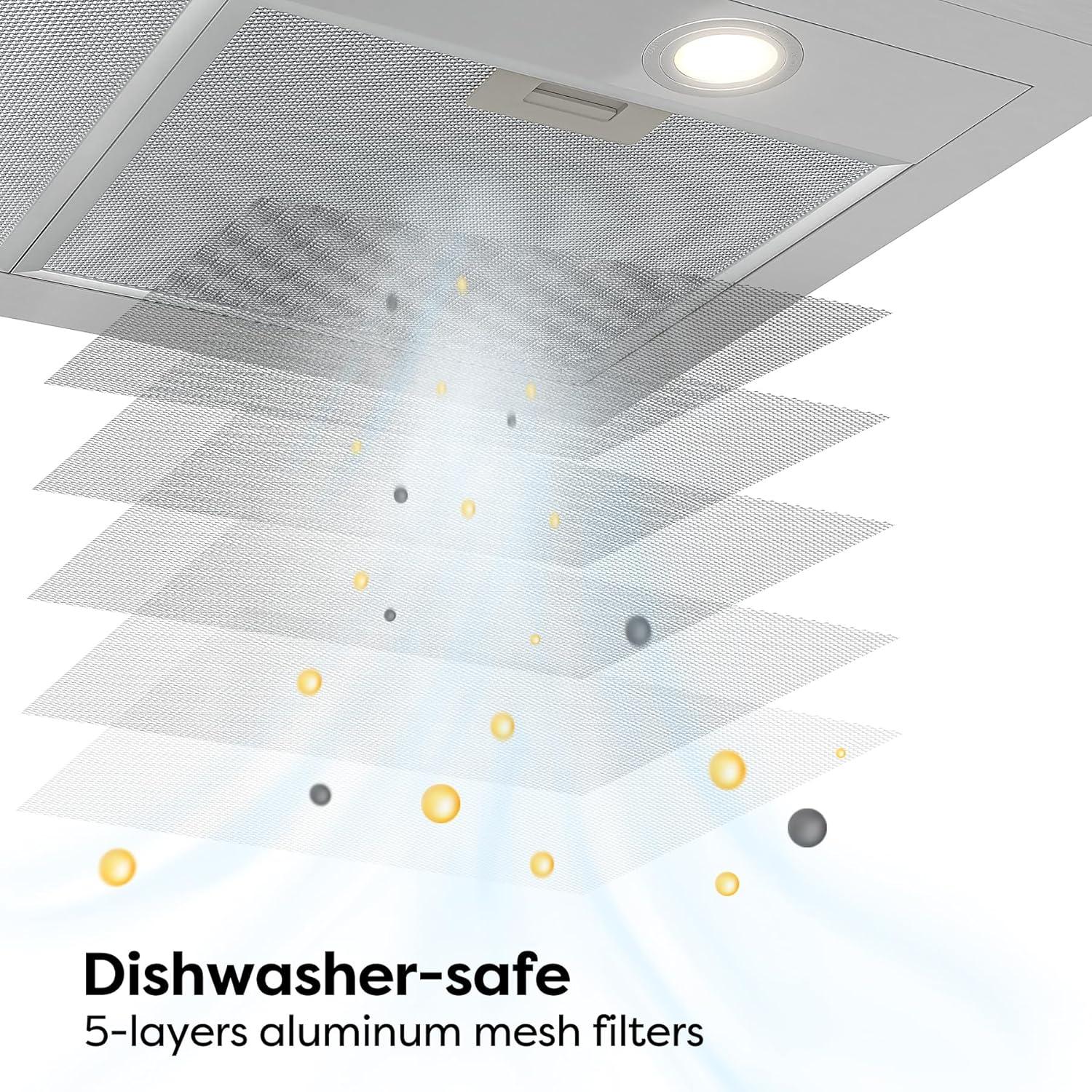 SAFETY AUTO SHUT-OFF: Wall mount range hood has 4 different preset timer functions, with an interval of 5 minutes between each setting, 20 minutes Max.