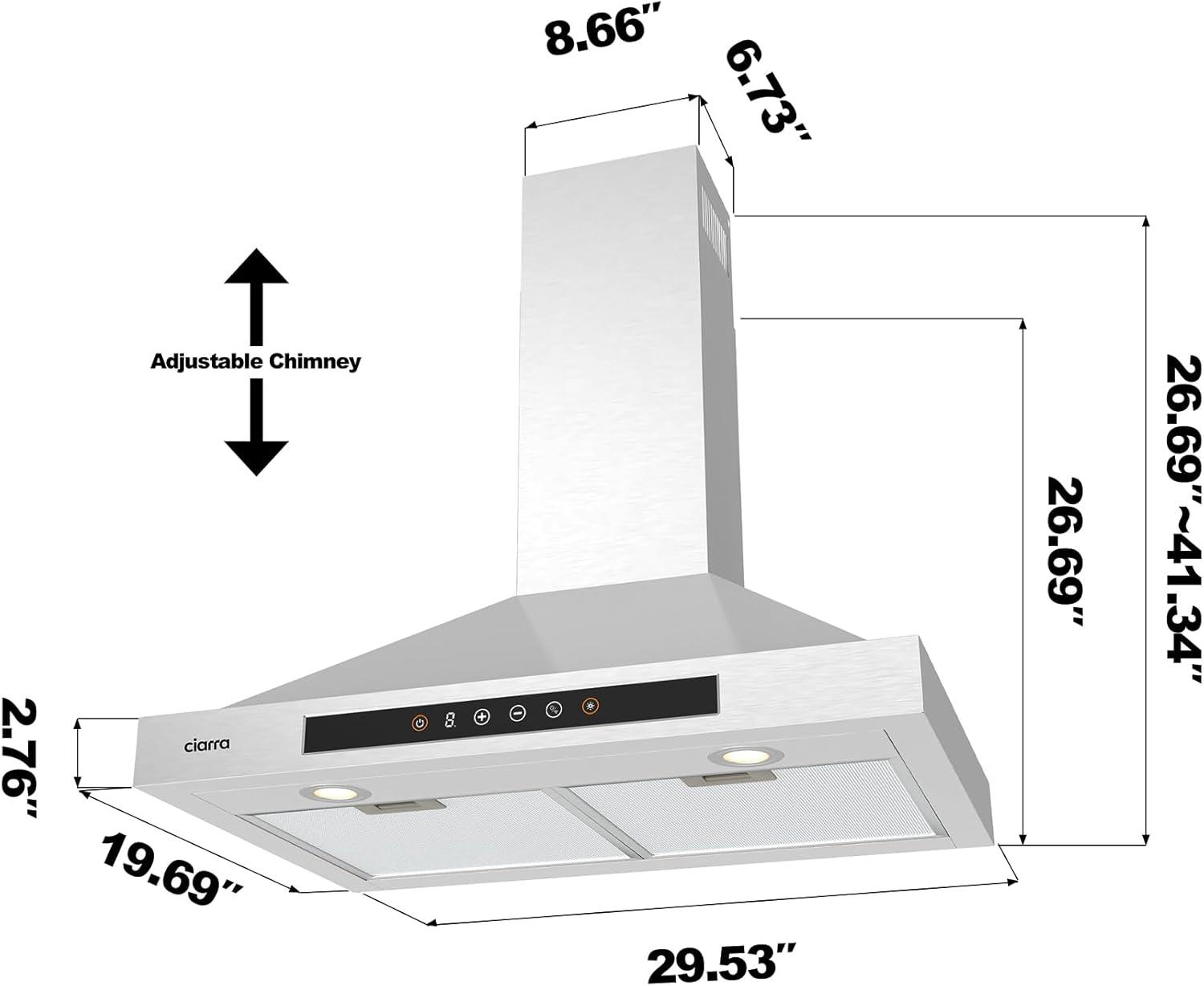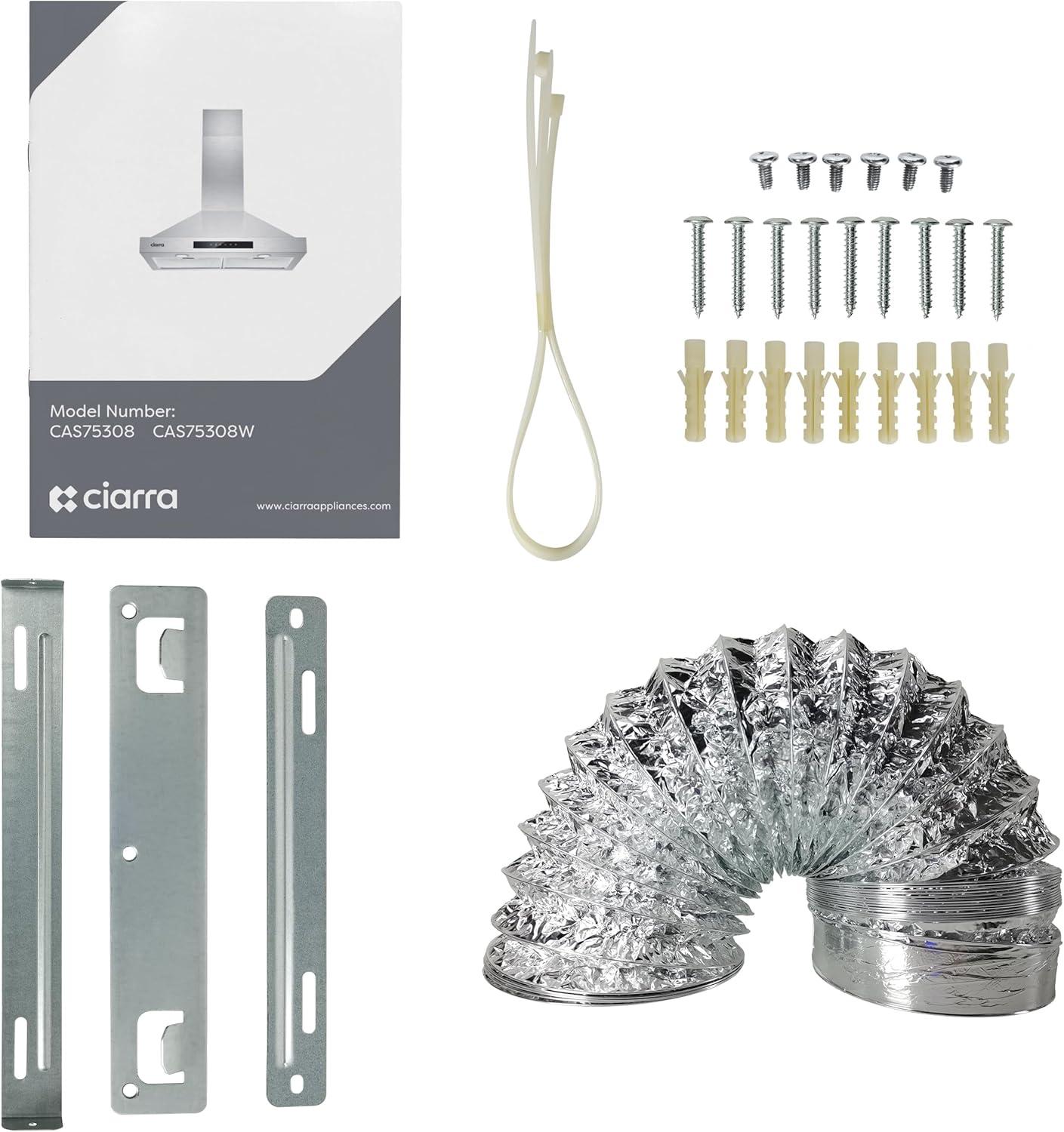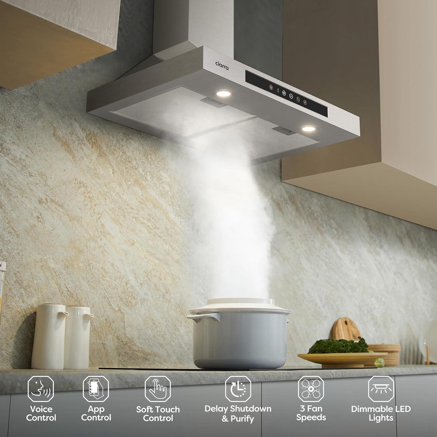 CIARRA Smart Range Hood 30 inch with Voice Control, Compatible with Alexa/Google Home/Smart Life Assistant, Kitchen Vent Hood in Stainless Steel with 2 Level LED Lighting, 3 Speed Fan, CAS75308W