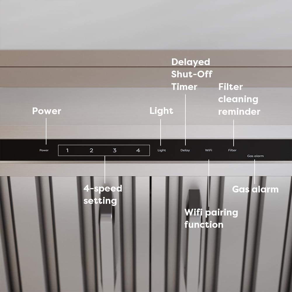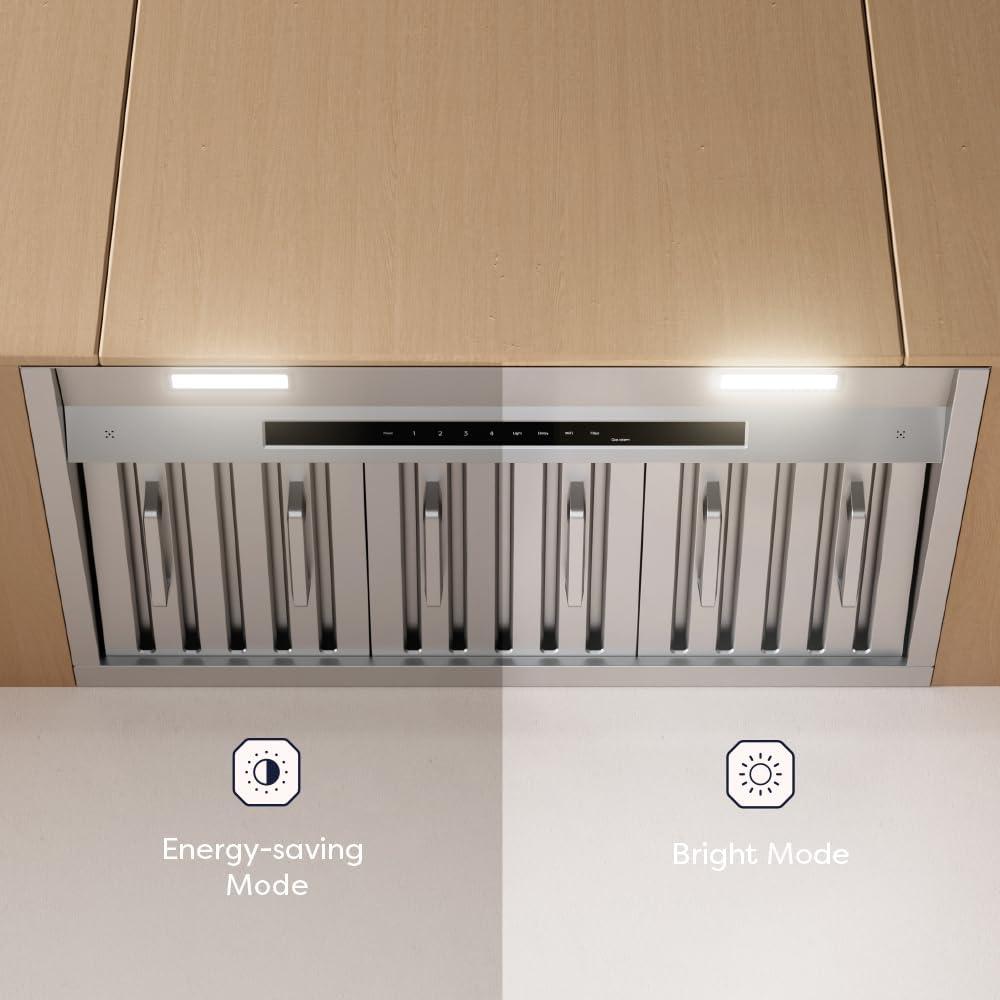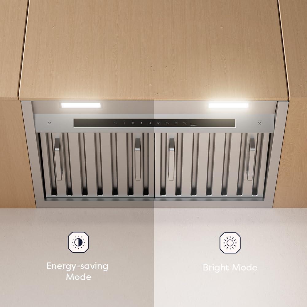 Gesture & Touch Controls + 2-Level LED: Switch seamlessly between wave-activated gesture control (no greasy hand contact) and precise touch buttons. 2-level LED lights provide shadow-free coverage for 30-inch stovetops or soft ambient lighting for dim kitchens—outperforming single-control, fixed-brightness alternatives.